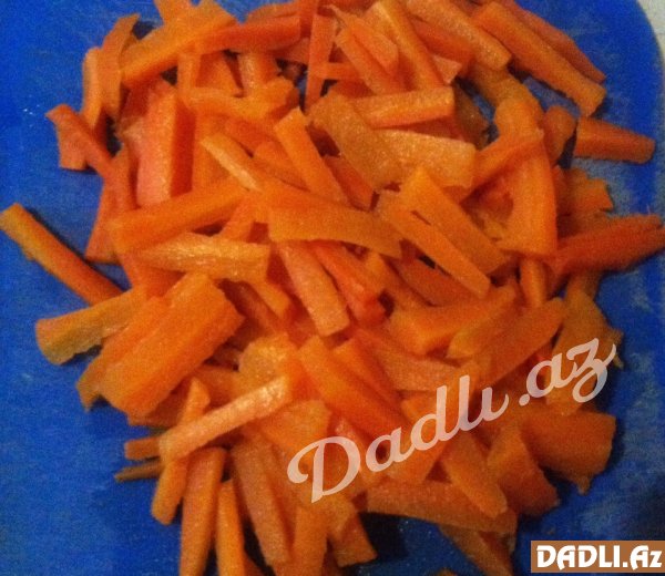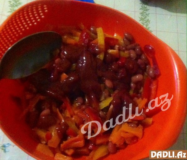 Bibərləridə kökü kəsdiyimiz formada kəsmək, sarımsağı xırda dogramaq,sonra bütün erzaqları qatıb duzlayıb, ketçup töküb qarışdırmaq.