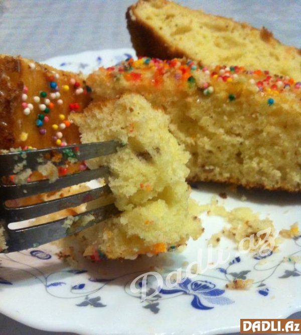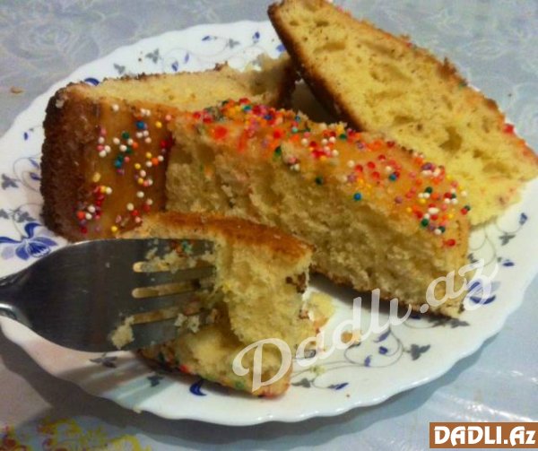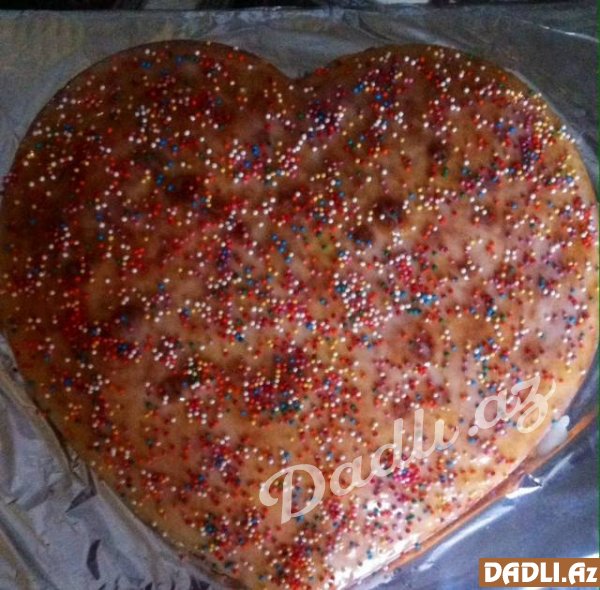 Bişdikden sonra üzerini zövqe göre bezemek, men bu defe cox sade etdim, sadece qatılaşdırılmış süd cekib üstden şirin damcı konfetikler (tort bezeyicün) sepdim.