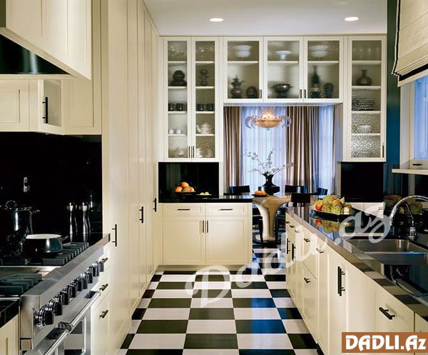 - klassik zəriflik, dar bir seçimdir kiçik mətbəx. Dekoruna qırmızı və ya narıncı elementləri əlavə edin və bu mətbəx daha da cazibədar olacaqdır.