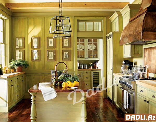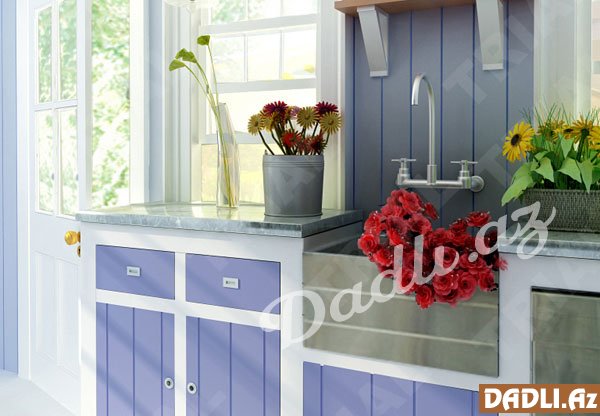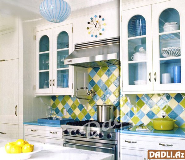 Əgər mavi bir baza kimi götürsəniz və sarı və bej ilə qarışdırırsanız, mətbəx dizaynında uyğun bir seçim olacaqsınız rustik stil.