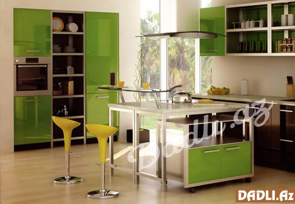 Sakit və balanslı kiçik bir mətbəx yaratmaq üçün yaxşı bir kombinasiya, yaşıl və sarı olacaq. Rəqabətlə oynayan maraqlı nəticələrə, məsələn, sevimli bir dizayna nail ola bilərsiniz.