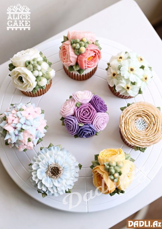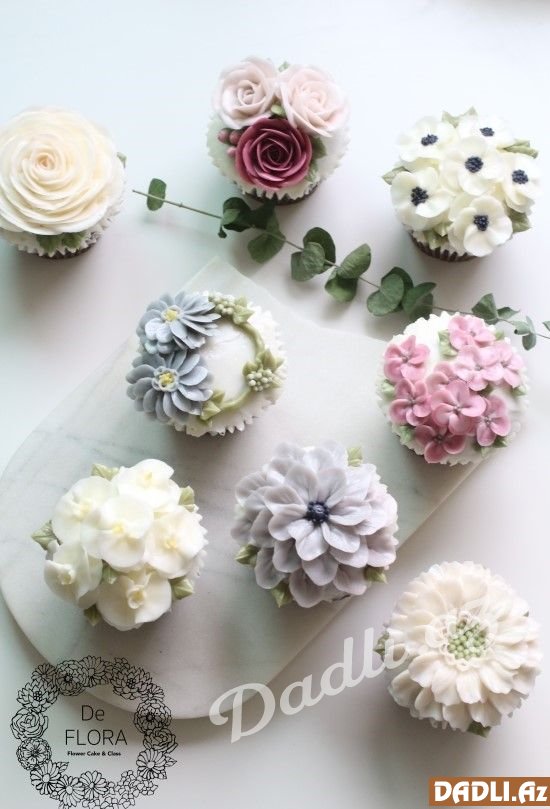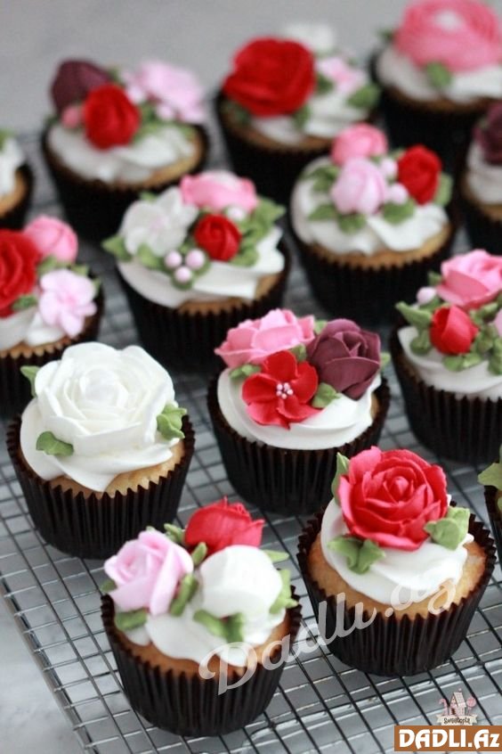 Tort və cupcakes çiçəklər kimi bəzəkli şirniyyatlar üçün istifadə olunur.