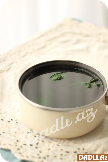 Yaşıl boya əldə etmək üçün də 5 stəkan su ilə dolu geniş qazana doğranmış ispanaqları və 1 ç.q. duzu əlavə edib 1 saat yaxşıca bişirilir.