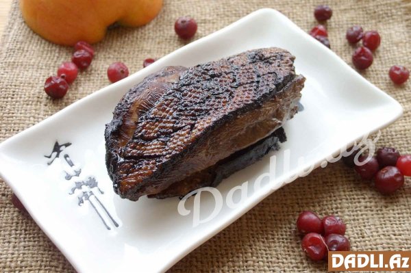 Sobaya yerləşdirə biləcəyiniz qalın tavanı ocaqda yaxşıca qızdırın. Ördək filesini tavaya dərisi aşağıda qalacaq şəkildə yerləşdirin və 3 dəqiqə boş tavada bişirin. Zəif ocaqda çevirərək digər tərəfini də 3 dəqiqə bişirin.