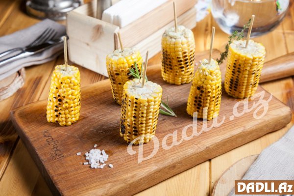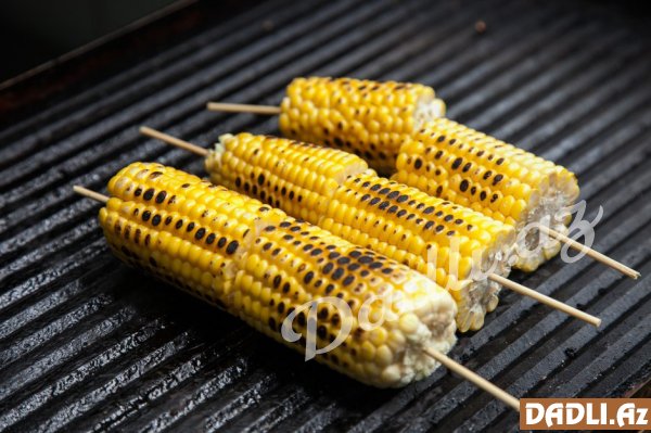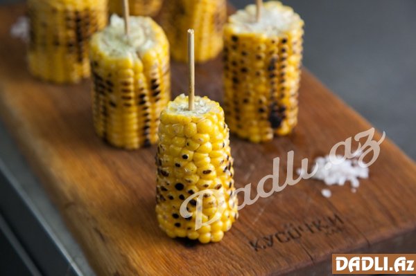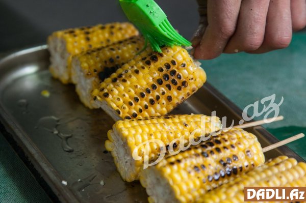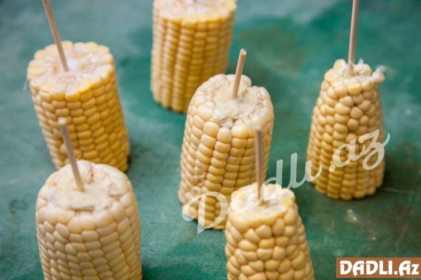 Kəsilmiş qarğıdalını xüsusi çubuqlara keçirib qızardırıq.