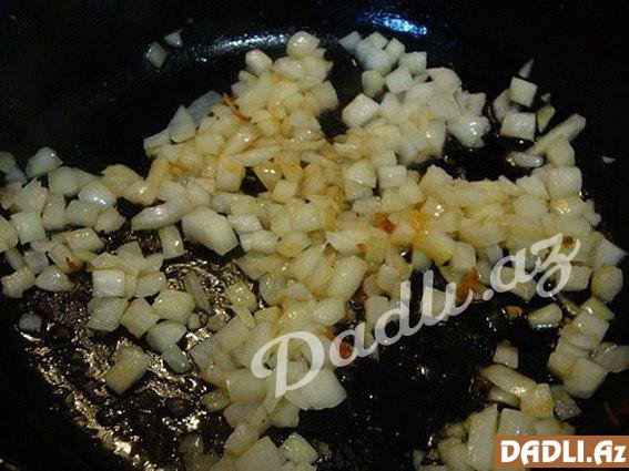 Həmin tavada soğanı 2-3 dəqiqə qovurun.