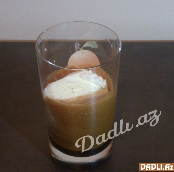 Daha sonra üzərinə su əlavə edib qarışdırır, dondurma töküb bir daha qarışdırırıq.