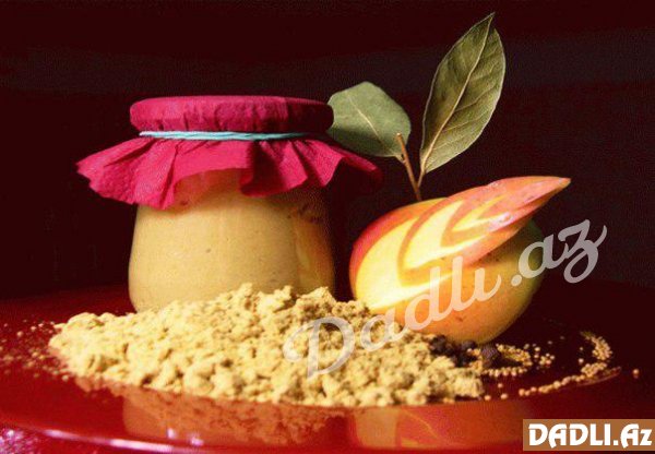 Qabığını çıxarıb isti-isti alma lətini əzin. 4 x.q. alma püresinə 3 x.q. xardal tozu və 1 ç.q. xardal dənələri (bunsuz da olar), 100 ml 6%-li sirkə, 2 x.q. şəkər tozu, 2 ç.q. duz qatıb qarışdırın.
