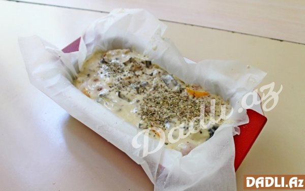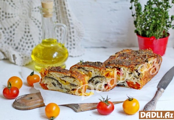 İlk addımda hazırladığımız qarışımn üzərinə tərəvəzləri əlavə edib, 180 dərəcə temperaturda 40 dəqiqə bişiririk. Badımcanlı keksimiz hazırdır.
