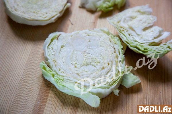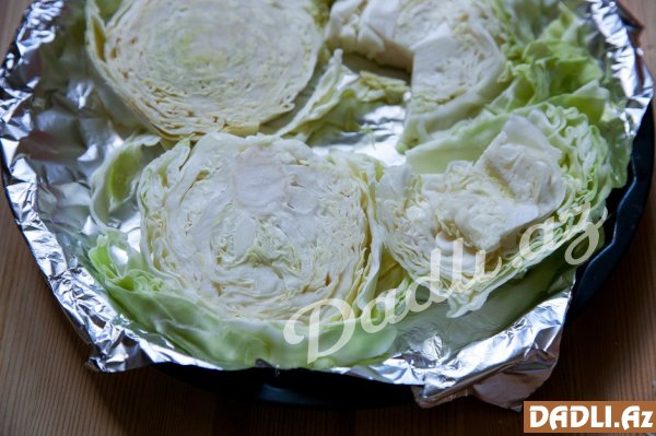 Kələmi 2-2.5 sm qalınlığında kəsir və falqanın üzərinə qoyuruq.