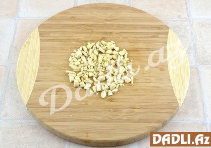 Sevdiyimiz çərəzləri xırda şəkildə doğrayırıq. Kahını əlimizlə bir neçə hissəyə bölüb boşqaba düzürük.
