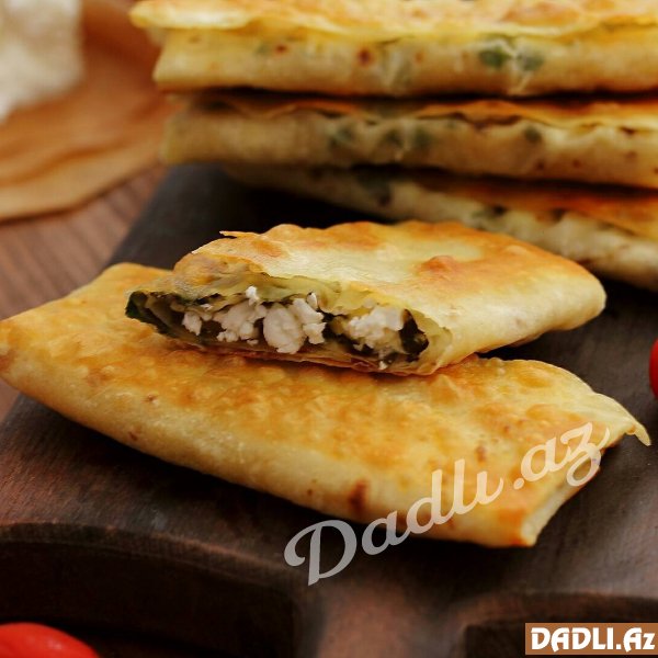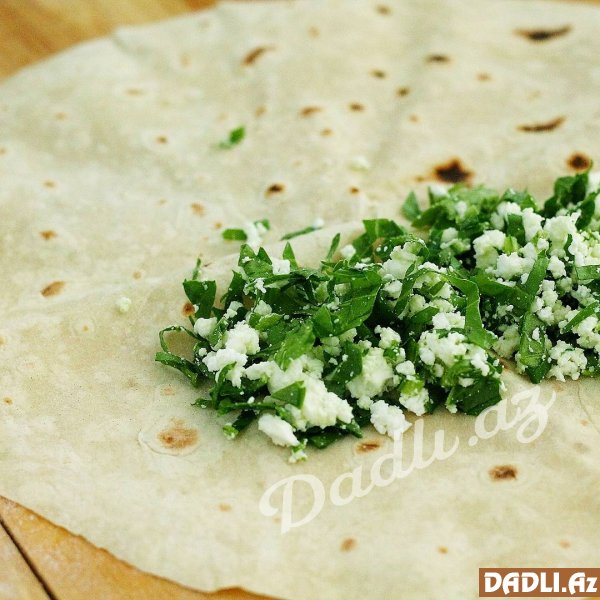 Göyərtini xırda doğramaq. Pendir ilə qarışdırmaq. İçlik hazırdı.