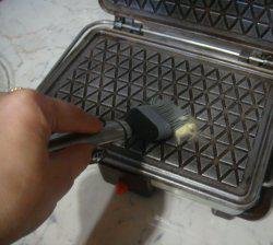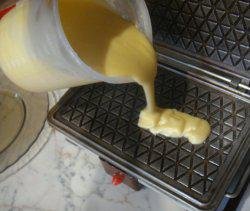 Vafli formasını qızdırın. Azca yağlayın. Formanın ölçüsündən asılı olaraq, ortasına bir qədər xəmir tökün. Qapağını bağlayın. Kütlə formanın içində özü yayılacaq.