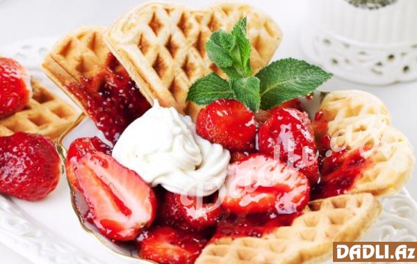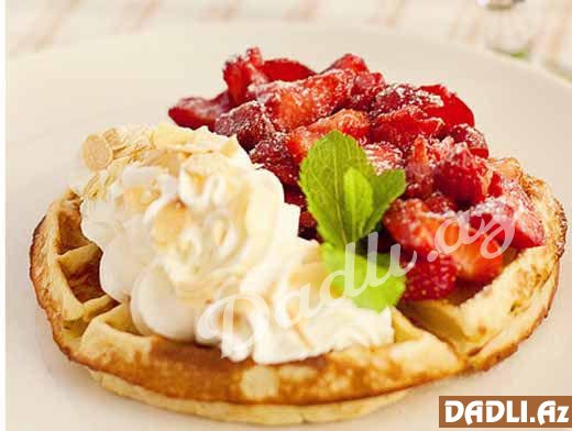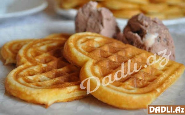 Vaflinin hər iki tərəfi qızılı rəng alanadək bişirin. Formadan çıxarıb, kənara qoyun. Vafli hazırdır. Servis edə bilərsiniz.
