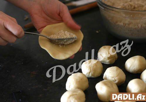 Xəmirdən əvvəl xəmirmayanı hazırlamaq lazımdır. Belə ki 1/3 stəkan isti suyun içinə maya, un, və şəkər tozunu əlavə edin. Yaxşıca qarışdırıb, ağzını örtün. 5 dəqiqə kənarda saxlayın.