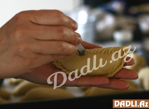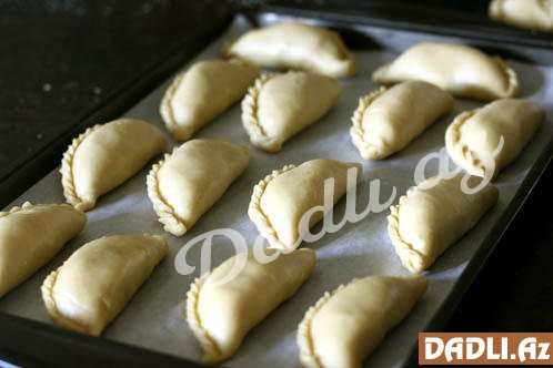 Yoğrulmuş xəmiri kündələrə ayırın. Hər kündəni oxlovla açıb, kiçik dairələr yayın. Hər birinin arasına bir xörək qaşığı iç qoyub, dairəni aypara şəklində bükün. Kənarlarını barmağınızla bərkidib, bura-bura bükün. Şəkərburaların üstünü maqqaşla bəzəyin. Daha sonra listə yığıb, sobada 15-20 dəqiqə bişirin.