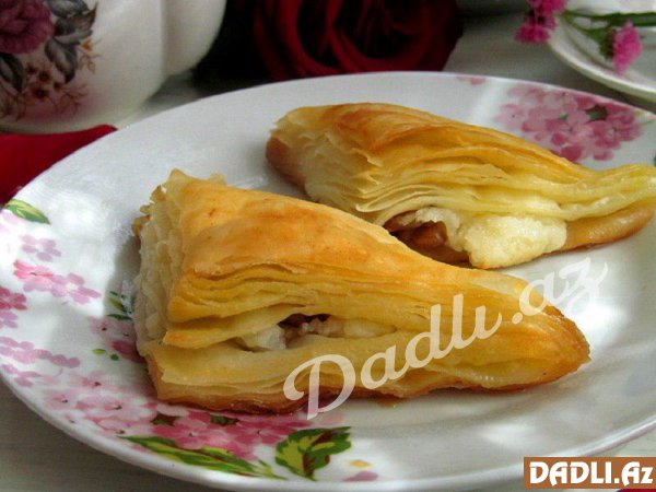 Xəmir: Qatığı 1 st. bitki yağı və yumurta ilə qarışdırın. 1 x.q. limon şirəsi əlavə edin. Qabartma tozu və duzla qarışdırılmış unu az-az əlavə edib yumşaq, elastik, ələ yapışmayan xəmir yoğurun.