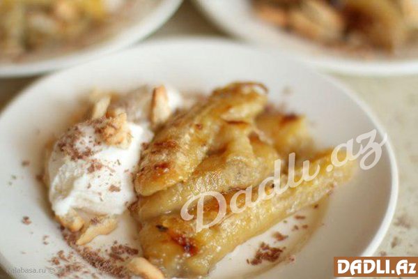 Boşqaba iki dilim qızarmış banan, bir top dondurma qoyun, peçenyenı xırdalayıb üzərinə səpin. Limon şirəsi də əlavə edə bilərsiniz. Şikoladı üzərinə sürtgəcdən keçirin.