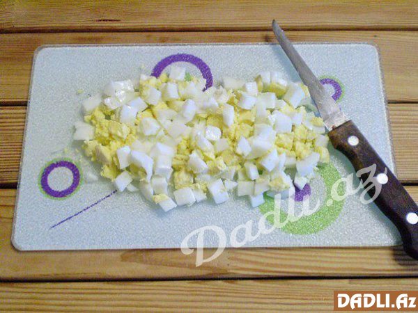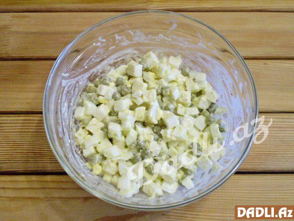 Hamısını bir qaba yığıb duz, istiot, mayonez qatıb qarışdırın.