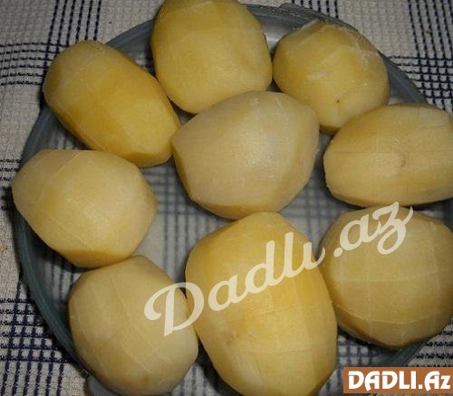 Orta böyüklükdə kartofları yuyub qabığını soyun. Az duzlu qaynayan suya salıb 5-7 dəqiqə bişirin.