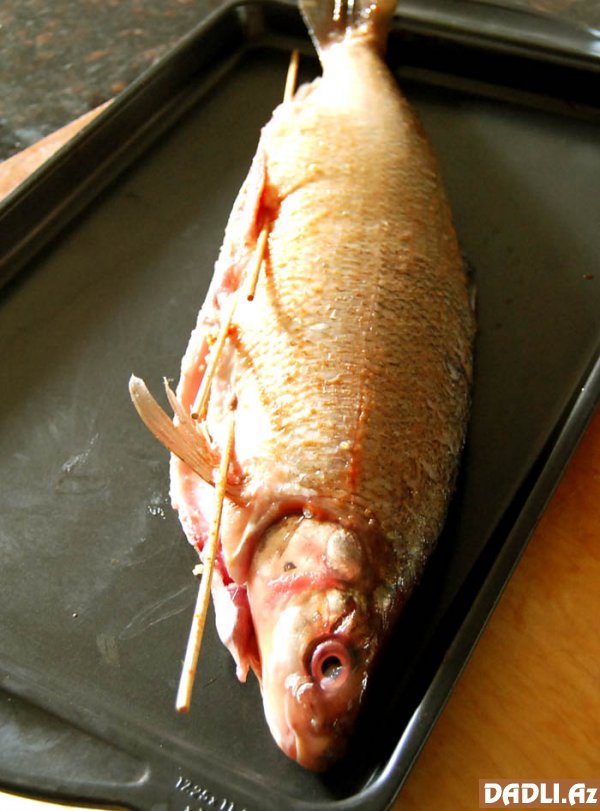 1. Balığın pulcuqlarını təmizləyin, içalatını çıxardın. Sonra isə balığı yuyun və yaxşıca qurulayın. İçini və üstünü duzlayıb istiotlayın.