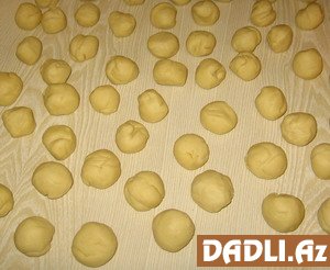 Unu ləyənə ələyin, yumurta qırın, süd, ərinmiş yağ, duz əlavə edib bircinsli yumşaq, ələ yapışmayan xəmir yoğurun.