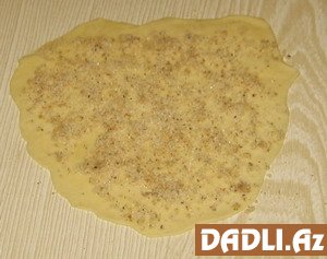 Bir kündəni götürüb napnazik yayın, üzərinə ərinmiş kərə yağı çəkin, iç səpin.