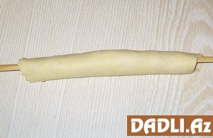 Napnazik oxlov (yoxdursa, çubuq) götürüb lavaşı onun köməyilə rulet kimi bükün.
