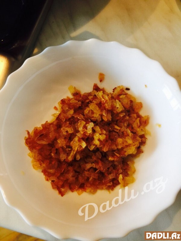 Axırda qovrulmuş soğan üstünə əlavə olunub süfrəyə verilir.