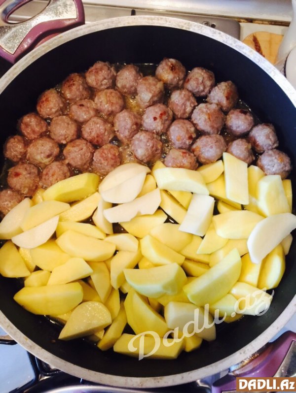 15 dəqiqə sonra kartoflar da kotletin yanına əlavə edilib aqzı baqlı səkildə bişirilir.