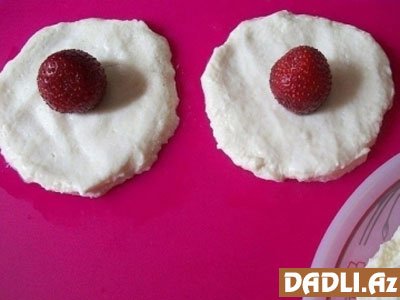 Xəmiri şəkildəki kimi açın və ortasın bütöv çiyələk qoyun.