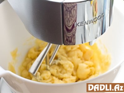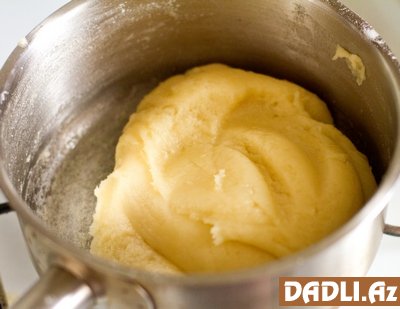 Qazanı ocaqdan götürüb xəmiri ləyənə qoyun. Bir-bir yumurta əlavə edib hər dəfə eynicinsli kütlə alınanadək çalın.