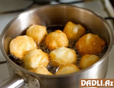 Xəmirdən əlinizlə, yaxud çay qaşığı ilə xırda kündələr tutun, yağa salın. Təxminən 3 dəqiqə, hazır olanadək bişirin.