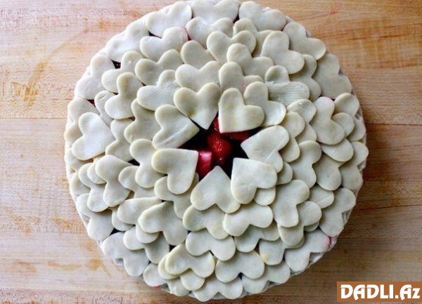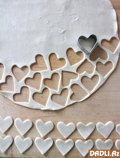 Kənarlardan başlayaraq xəmir ürəkləri yanaşı, növbəti sıralarda isə üst-üstə düzün.