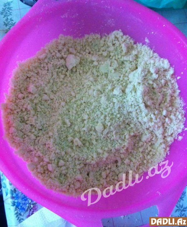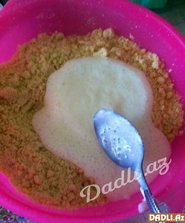 Yağla unu umac edib, xamanı ve sodalı qatıgı töküb xemir edirik (cox asan,sade)