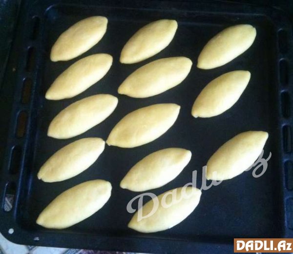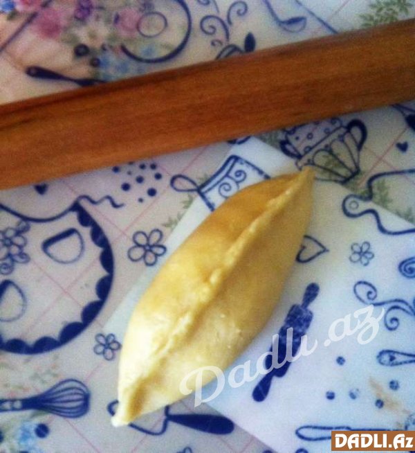 Xəmirden balaca kündələr götürüb(yumurta boyda) yayırıq(unsuz yayılır,yapışmır) içinə içlik qoyub xəmirin ağzını yapışdırırıq.